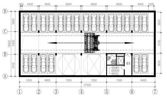 采用巷道堆垛機(jī)將搬運(yùn)機(jī)器上的車輛水平垂直移動(dòng)到存車位,通過(guò)存取機(jī)構(gòu)存取車輛。出入口通常設(shè)置垂直升降機(jī),這種車庫(kù)自動(dòng)化程度很高,且全部封閉式建造,車輛安全性好。該車庫(kù)類型主要適用于大型密集式存車。